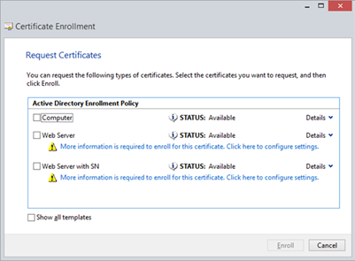 · Ensuring that the Web Server tick box is checked, click on Enroll.